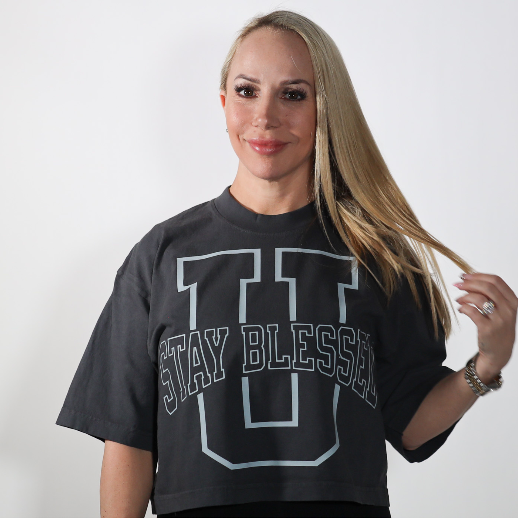 Stay Blessed University OS Crop Tee
